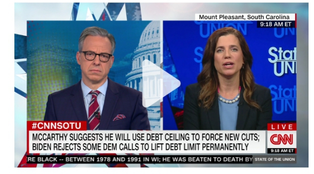 When asked by Tapper about legislating and meeting with leaders of the Senate and people in the White House to come up with a way to reduce spending, Mace noted Republicans had been “shut out of many of those conversations.”