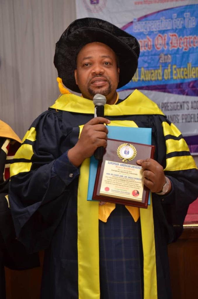 The Chief Executive Officer of Jimez Petroleum Resources, Chief Hon. Jim Chimezie Okolo has been honoured with an Honorary Doctorate Degree award from the prestigious European-American University.