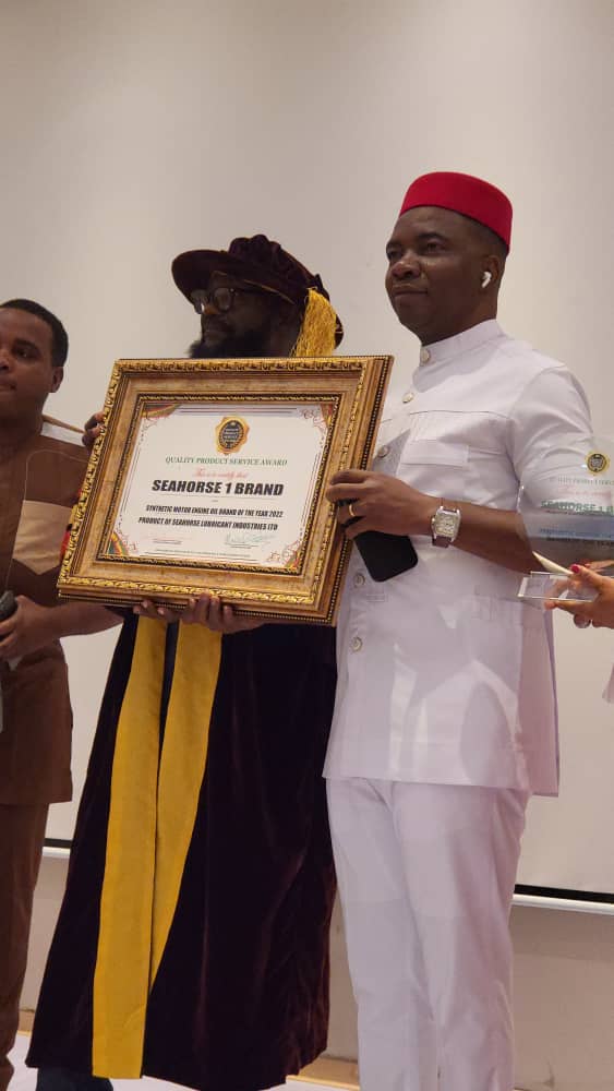 The SeaHorse 1 Brand won the Best Synthetic Motor Engine Oil Brand of the Year 2022 at the Quality Product Service Award by INSTITUTE OF OIL AND GAS RESEARCH AND HYDROCARBON STUDIES , which took place on Thursday, November 3, 2022, at the Sheraton Hotel and Towers in Lagos.