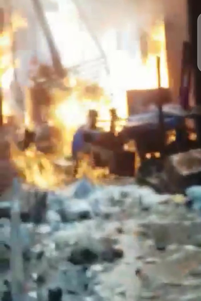 Serious chemical explosion at Government line, ọgbọ ọgwụ, head bridge market Onitsha, many feared dead. The explosion was said to have brought down of the buildings.