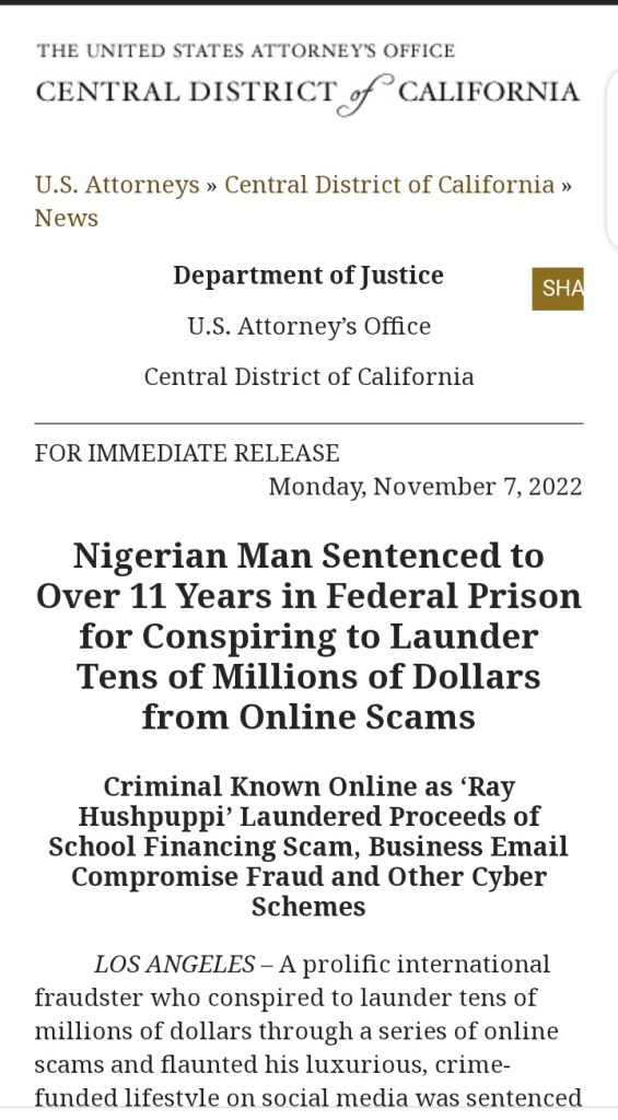 “Ramon Abbas, a.k.a. ‘Hushpuppi,’ targeted both American and international victims, becoming one of the most prolific money launderers in the world,” said Don Alway, the Assistant Director in Charge of the FBI’s Los Angeles Field Office. “Abbas leveraged his social media platforms – where he amassed a considerable following – to gain notoriety and to brag about the immense wealth he acquired by conducting business email compromise scams, online bank heists and other cyber-enabled fraud that financially ruined scores of victims and provided assistance to the North Korean regime. This significant sentence is the result of years’ worth of collaboration among law enforcement in multiple countries and should send a clear warning to international fraudsters that the FBI will seek justice for victims, regardless of whether criminals operate within or outside United States borders.”