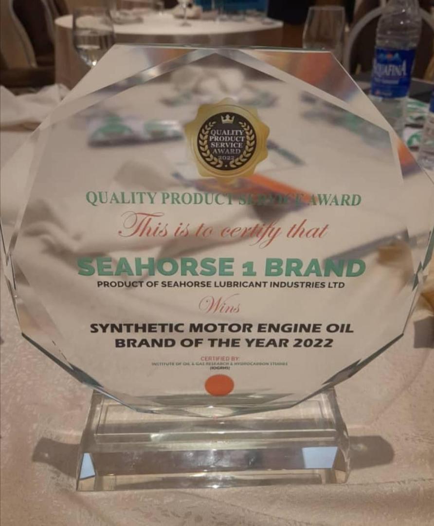 SeaHorse 1 Brand, a synthetic motor engine oil product of Seahorse Lubricant Industries Ltd, manufacturers of lubricating oil for internal combustion engines and mechanical systems, has once again bagged a top-notch award for its excellence and quality. The SeaHorse 1 Brand won the Best Synthetic Motor Engine Oil Brand of the Year 2022 at theContinue reading “Seahorse Lubricant Brand Wins Award”